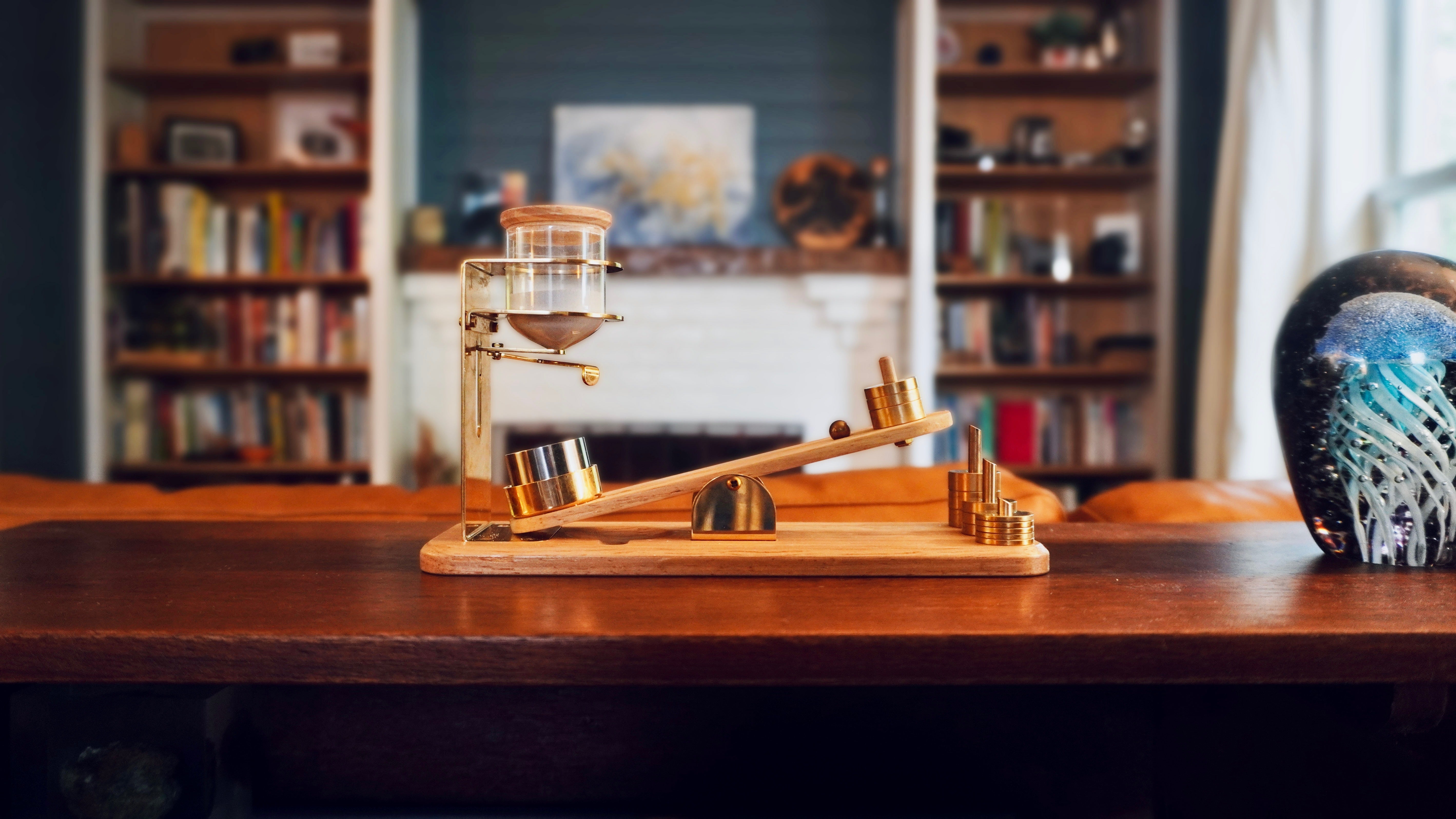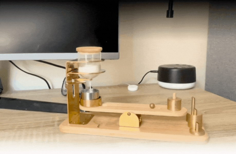 When the time is complete, the device will tip and the ball will fall ringing the bell.